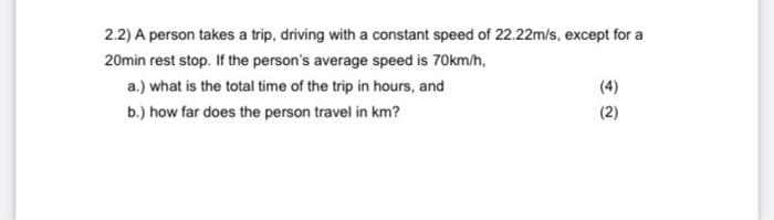 Solved 2 2 A Person Takes A Trip Driving With A Constant Chegg Com
