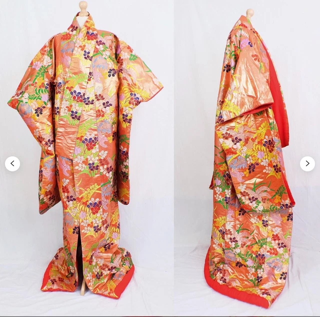 Doublure Rouge Vintage En Soie Japonaise Brodee Mariage Kimono Paon Uchikake Eur 541 25 Picclick Fr